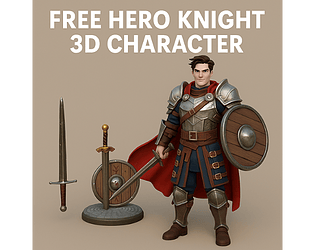 A free high-quality fantasy hero knight with sword, shield and display stand. Perfect for RPGs