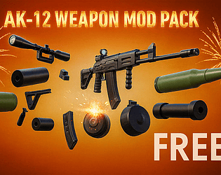 A high-quality 3D AK-12 weapon pack with attachments, magazines, scopes, and suppressors. Optimized and game-ready.