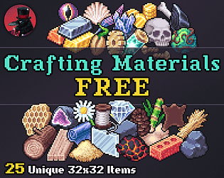 100+ high quality 32x32 pixel art sprites of items for crafting.