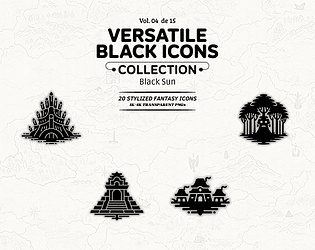 20 sacred black fantasy icons — pyramids, temples, and ritual architecture in minimalist form.