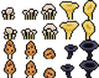8x8 1-bit, with white planes and black outlines, this pack contains the basic elements of every fantasy overworld.