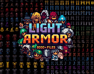 9,000+ light armor assets — robes, leather, hoods, gloves & boots with color and outline variants.