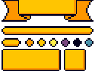 16x16 buttons, background and UI elements for level select, pause, inventory menus