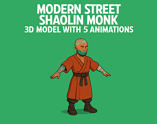 3D Modern Afro Shaolin Character Rigged Pack – 3D Model with Walk, Run, Jump, Kick & Die Animations
