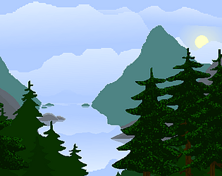 2d Pixel Art background for forest / mountain / fjord nature levels