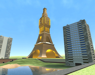 A 3D mashup of Big Ben, the Eiffel Tower, and the London Monument