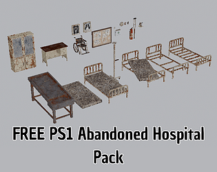 A FREE PS1 Style abandoned hospital 3D asset pack, ready to use.