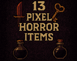 A high-quality set of 13 dark, horror-themed pixel art items, perfect for games in the style of horror