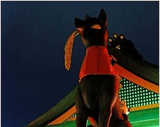 Cartoon style character inspired by Dino from The Flintstones and Fang's children from Primal.