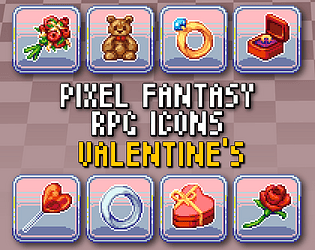 14 different 32x32 pixel icons for Valentine's Day and romance games.