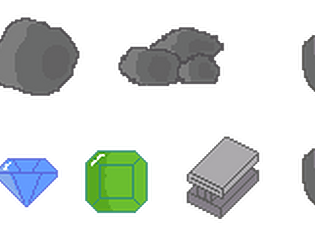 materials 2d pixel iron, coin, emerald, diamond, gold cooked and uncooked
