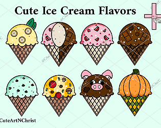 21 Ice Cream Flavor Icons, Digital Foodie Art, 2D Food Assets
