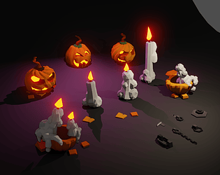 FREE low-poly Halloween props: melted candles, pumpkin-candles, twisted jack-o'-lanterns. Blender sources