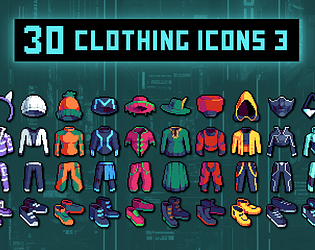 Free Clothing Pixel Icons for Cyberpunk Game for your game projects