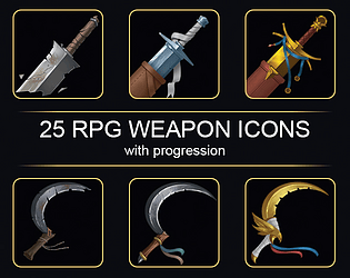 Greetings! This pack contains 5 weapons with their level-up progression: from the rusty iron to the noble gold!