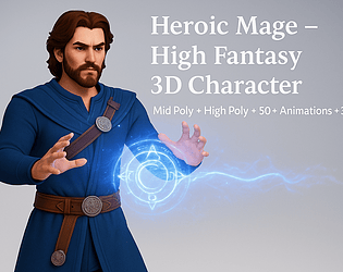 Dark-fantasy Rogue con versiones hi-poly y mid-poly, 20+ animaciones y daga. Lista para Unity, Unreal y Godot.