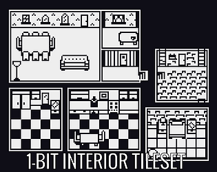 A 1-bit 8x8 pixels tileset with +130 tiles with enviroment, decoration, builds and more