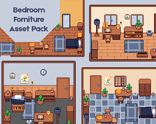 A cozy pixel art furniture pack for your bedroom scenes. Perfect for RPGs, simulation games, and indie projects.