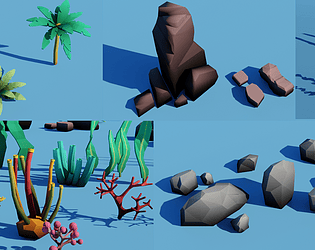 Create your dream tropical paradise with this versatile low poly pack: palm trees, rocks, plants, & more!