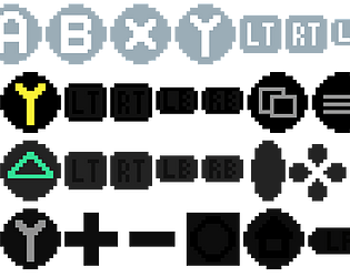Pixel Art assets of buttons for Xbox, Ps4, and Switch Controllers.