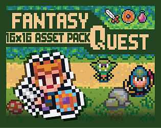 16x16 pixel art asset pack for top-down RPGs in the classic Fantasy Quest theme.