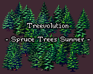 This pack includes 64x96 summer themed spruce trees with PNG files – perfect for RPGs and platformers.