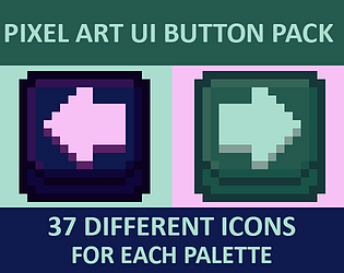 148 Pixel Art UI buttons with 4 different color palette options.