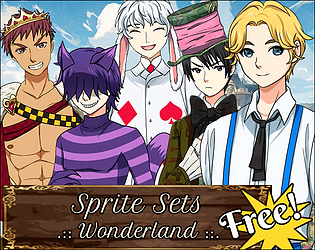 Free thigh-up male Wonderland-inspired visual novel character sprites! (Transparent 2D PNG)
