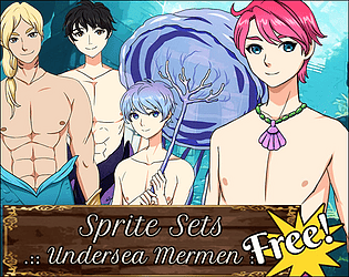 Free thigh-up male anime merman visual novel character sprites! (Transparent 2D PNG)