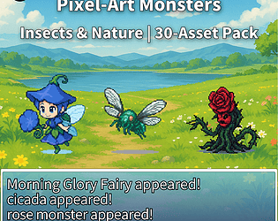 30 pixel insects & nature (PNG, S/M/L @1x). e.g., Ant, Mantis, etc. For RPG Maker, Unity, Godot. Commercial use OK.
