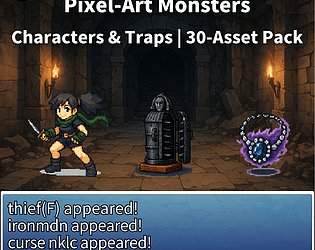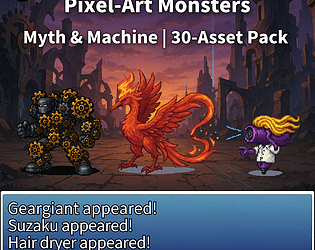 150 pixel monsters for RPGs — yokai, animals, myth, machines, and more. PNGs for RPG Maker, Godot, Unity.