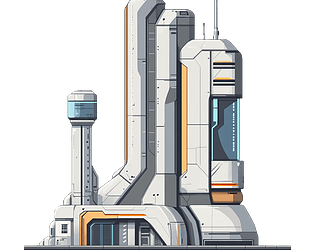 2D sci-fi building pack for parallax cityscapes and platformer backgrounds.