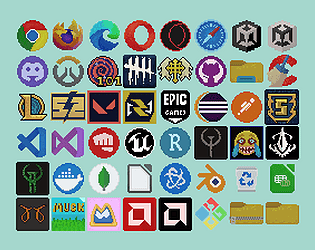 A 32x32 pixel art icon pack for desktop/ui designs. Includes 48 icons and animated mockup example.