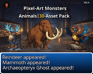 30 pixel animals (PNG, S/M/L @1x). e.g., Python, etc. For RPG Maker, Unity, Godot. Commercial use OK.