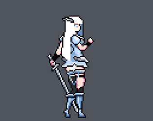 Dynamic sprite pack with battle stances, win/loss poses, hurt states & action shots—ideal for fantasy RPG cutscenes.