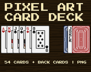 A full retro-style pixel card deck for your games – 52 cards, 2 jokers and 2 backs