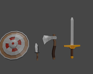 Collection of 11 low-poly stylized weapons, ideal for fantasy and adventure games.