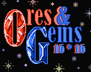A shiny collection of ore and gem sprites for 2D games(16x16)