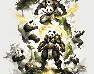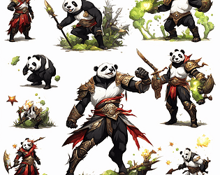 i give 5 example panda warrior generated ai for concept, for your game, etc