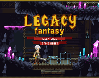 A pixelart tileset inspired by modern day platformers in a fantasy cave environment.