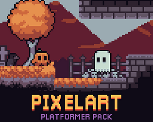 A pixelart tileset inspired by modern day platformers in a halloween graveyard environment.