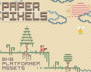 Free pixel platformer asset pack using stylized paper-esque visuals + animated player and enemies.