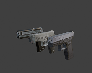 A clean, Retro low poly weapon pack with 12 blocky gun models.