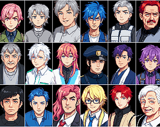 A pack of 259 (at the moment) anime-style male portraits in pixel art style (512×768) with transparent backgrounds.