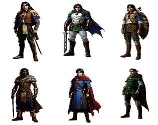 234 transparent pixel art male fantasy characters. Ready-to-use transparent PNGs.