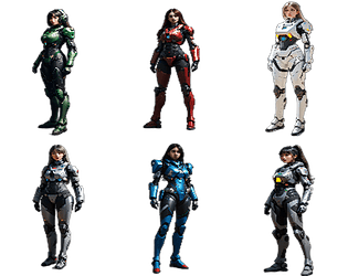 106 transparent pixel art female sci-fi characters. Ready-to-use transparent PNGs.
