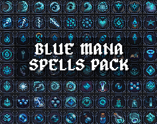 A downloadable asset pack with 81+ uniques Mana Spells !