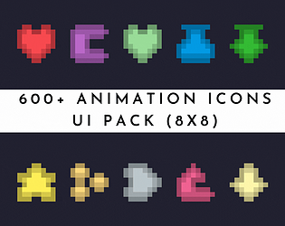 Multicolor UI Icons pack, includes 600+ pixel art animations.