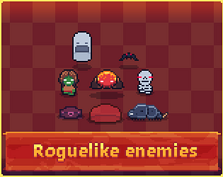 A pack of 9 animated pixel-art enemies, perfect for roguelike and retro-style games.