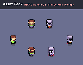 A Pixel art pack with 16x16 characters in 8 directions for RPG games